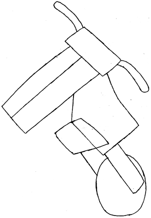 Next, draw a trapezoid at the base of the wedge, and a long rectangle attached to a circle.