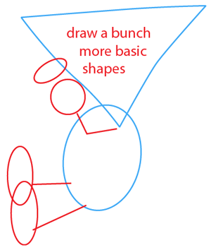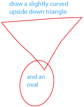 Draw a slightly curved upside down triangle and an oval below the triangle.