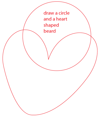 Now use blue shapes that you drew to draw an outline of the head. At the top of the circle head, draw letter ‘M shapes for the hair. Draw some ovals for the fingers inside of the ovals hands. Draw a curve in between instead of a heart and draw a number ‘3’ shape at both sides of the heart.