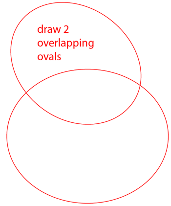 Draw two ovals overlapping each other.