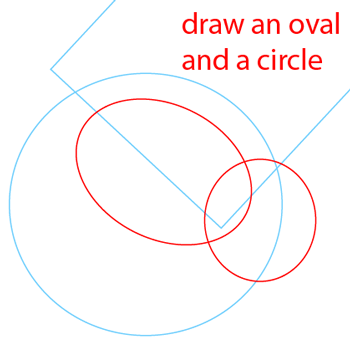 Draw another oval for the left sleeve and two circle filled with four ovals each.
