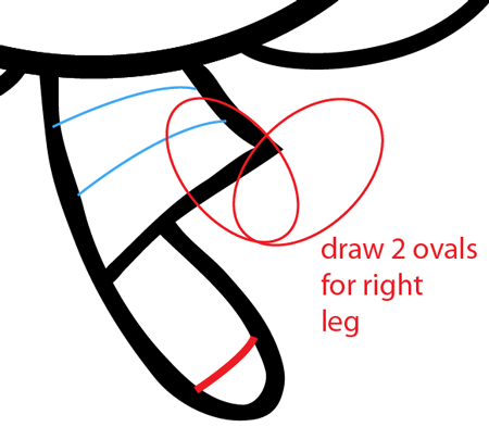 Draw two ovals for the right leg and draw three lines the little details.