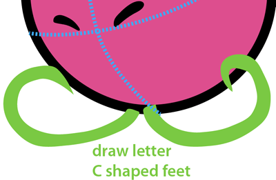 Draw a letter ‘C’ shapes for the feet.