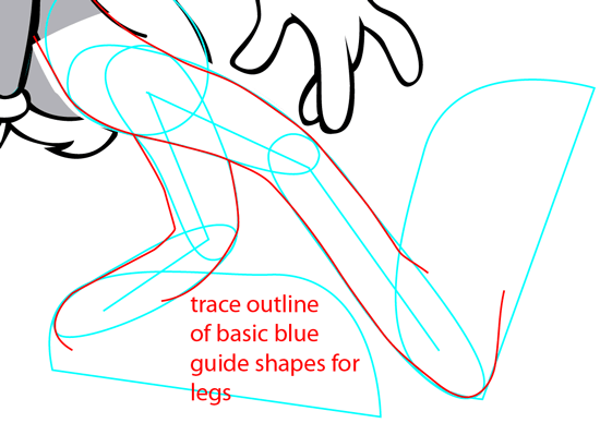 Trace the outline of the basic blue shapes for the legs.