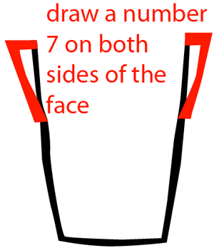 Draw a number ‘7’ shape on both sides of the face.