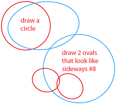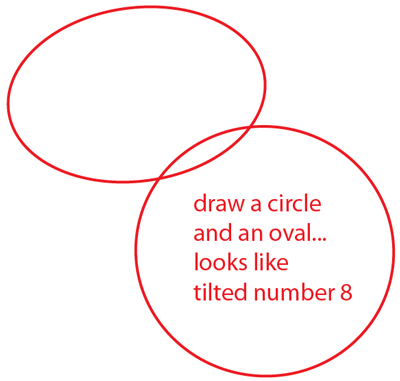 Draw a circle and an oval that together looks like a tilted number ‘8’ shape.