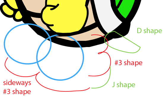 Then draw a sideways letter ‘C’ around the collar and draw curves around the belly.