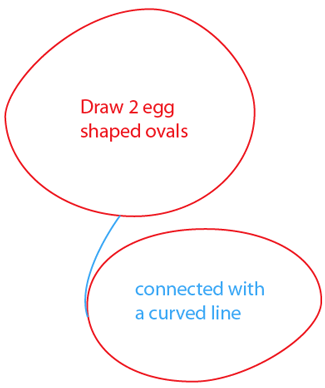 Draw two egg shaped ovals and then connect them with a curved line.