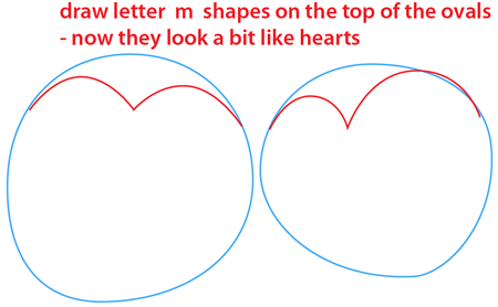 Now draw letter ‘m’ shapes on the top of each oval, they look a bit like hearts.