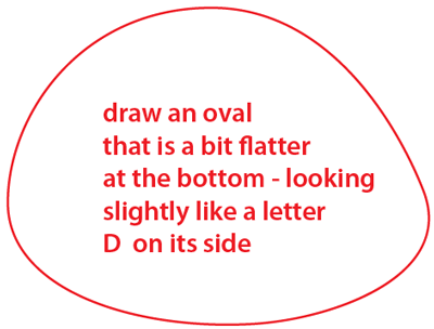 First, draw an oval that is a bit flatter at the bottom, looking slightly like a letter ‘D’ on its side.