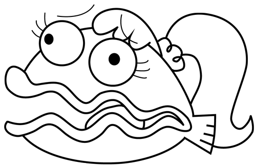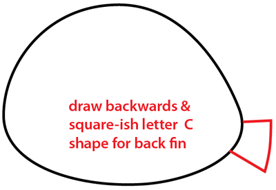 Then draw a backwards and squarish letter ‘C’ shape for the back fin.