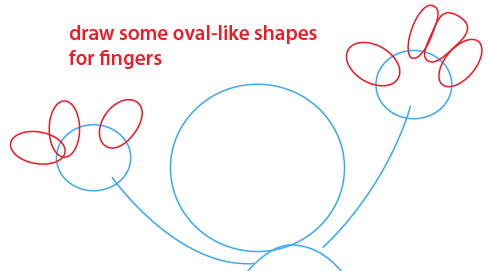 Then draw some oval-like shapes for his fingers.