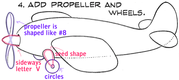 Next, draw the propeller and wheels.