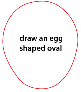 First, draw an egg shaped oval.