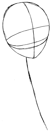 Draw his body next. Start with a glass shape with a line splitting it down the middle.