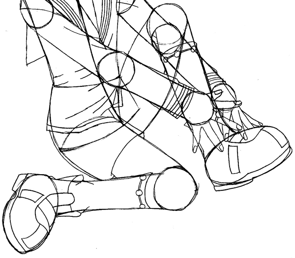 Finally draw the details for his legs. Draw his shorts, socks and shoes.
