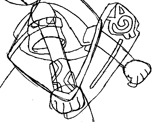 Next, draw his quiver. Add his emblem on the top, along with some straps to hold it in place.