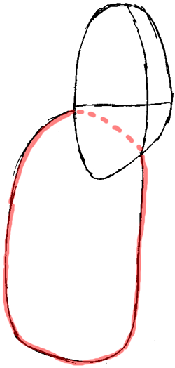 Draw the body like a half taco shape, arched at the back with the head sunk in the front.