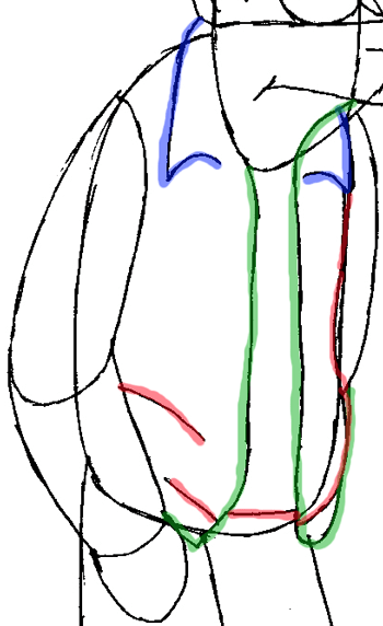 Next draw his jacket. Make it simple, a few creases and lines for pockets.