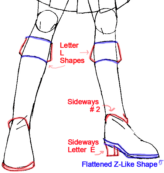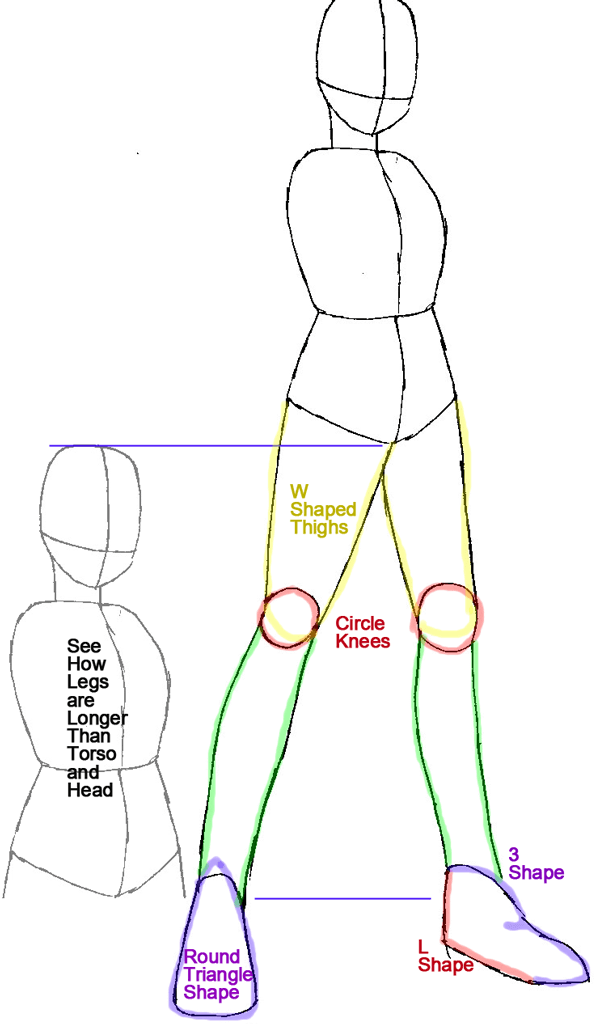 For the legs, use long slender lines, of equal lengths for the leg and calf.