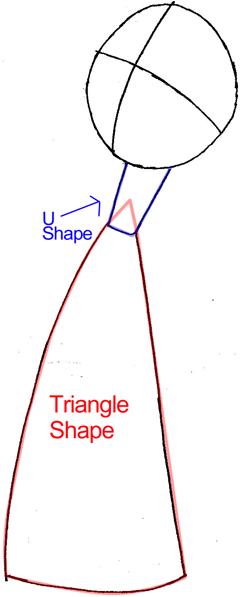 Draw his neck and a triangle shape for his body.