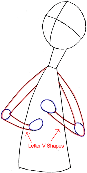 Next, draw his arms.