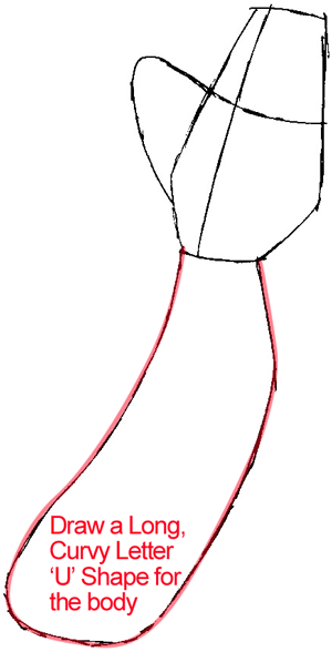 Draw a long curvy letter ‘U’ shape for his body.