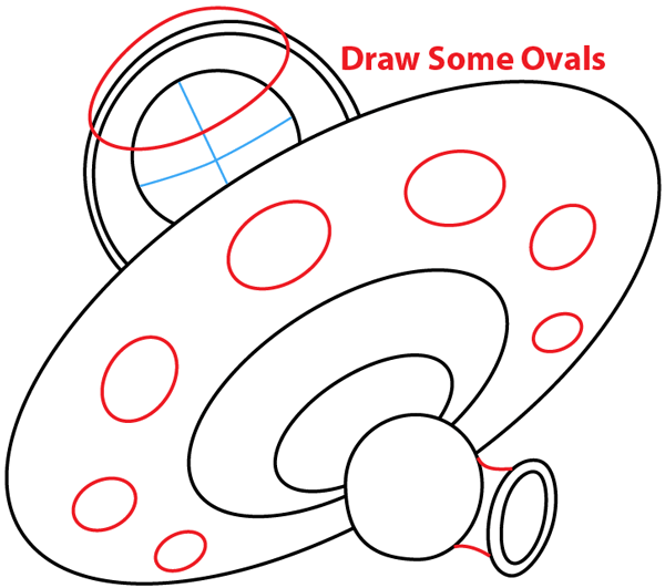 Draw two circle like shapes and then draw an oval like the illustration above.