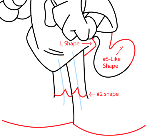 Use the diagram above to guide you in drawing his hand and shirt with the help of letters and number shapes.