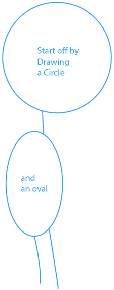 Start off by drawing a circle and an oval and join then with a line and then draw two lines coming from the oval.