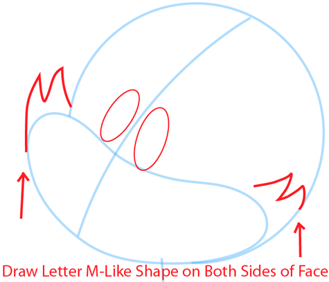Draw letter ‘M’ shape on both sides of his face.