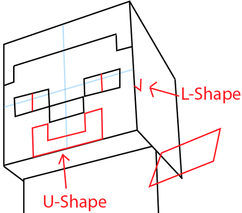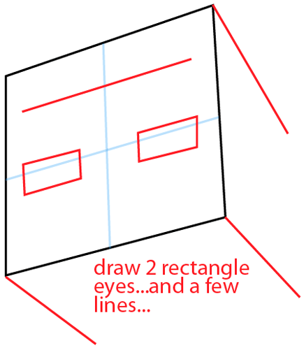 Next, draw two rectangle eyes and a few lines (turning it into a cube like figure).