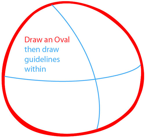 First you need to draw an oval then draw guidelines within the oval.