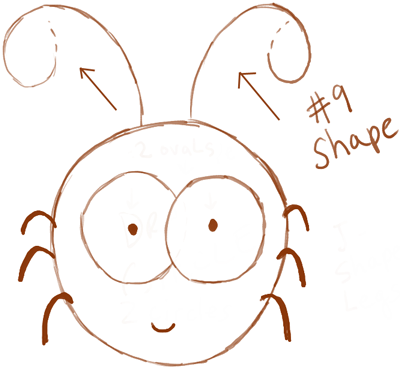 Draw two #9 shapes for bug antennae.