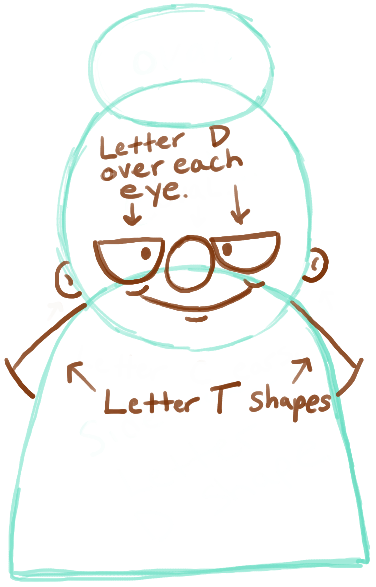 – Draw letter ‘D’ shapes over the eyes (for glasses lenses).