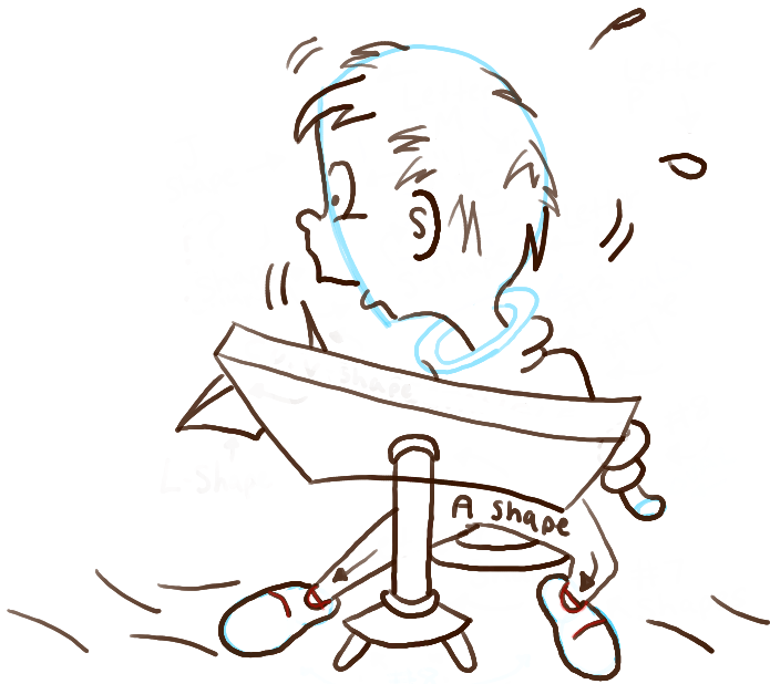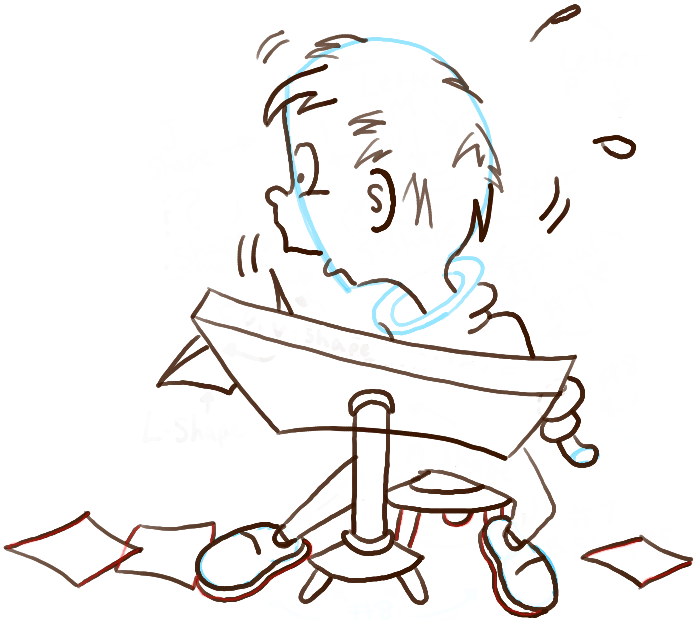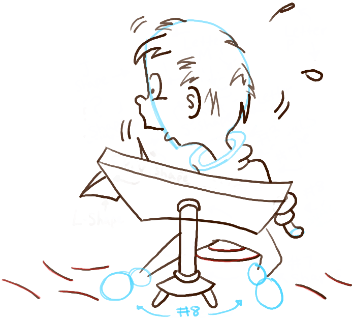 – Draw groups of 2 curved lines in a few places to show that the student has the jitters.