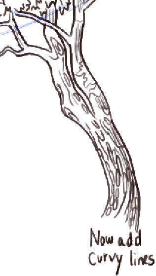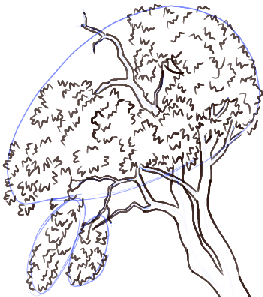 – Now that you have the guides done it is time to outline them with the actual lines….as seen above. You can add a few lumps…as most tree have spots that stick out a bit.
