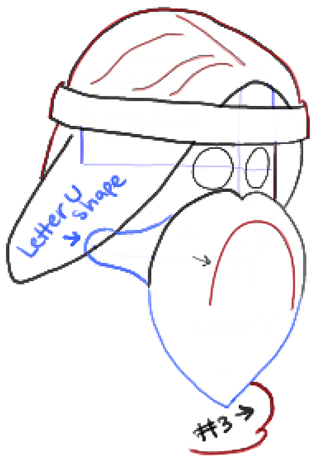 – Draw a letter ‘v’-like shape under the #3-like beard shape.