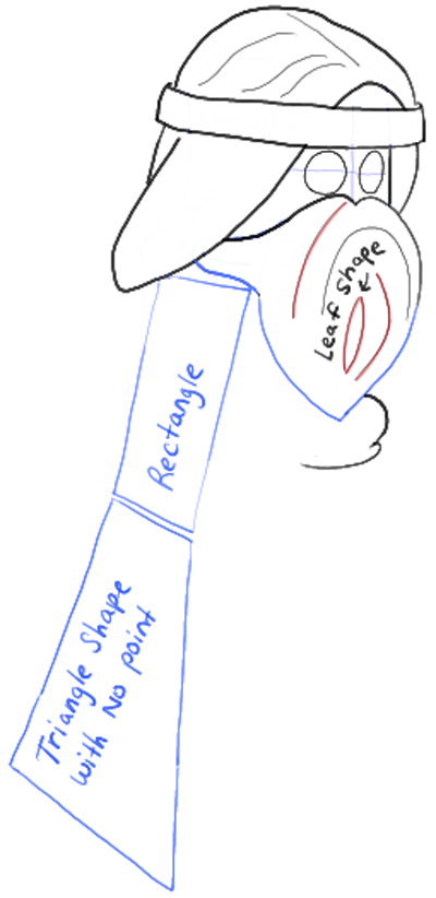 – Draw a leaf shape and 2 curved lines within the beard.