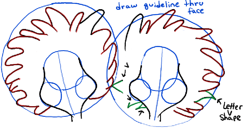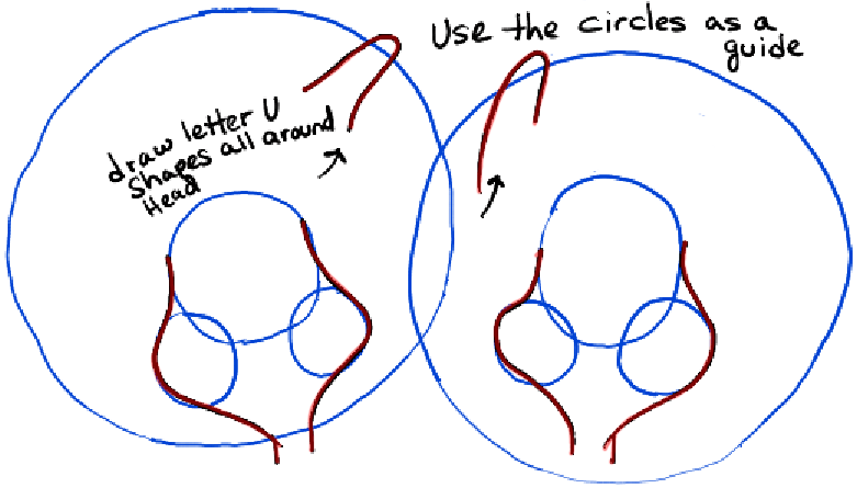 – Start drawing the letter ‘U’ shape humps around the hair guidelines. This will be the actual shape of the hair.