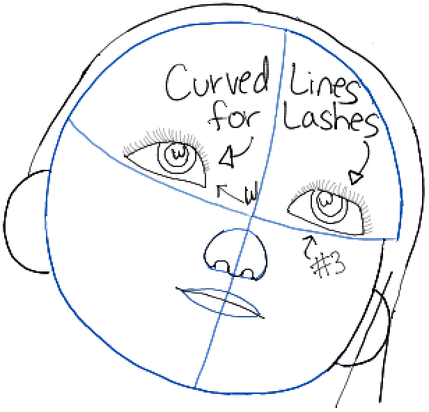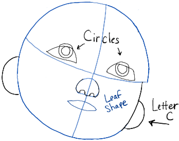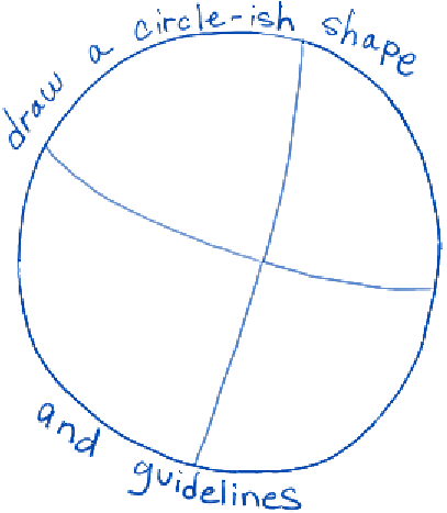 – Draw a circle-ish shape. Then draw guidelines within it.
