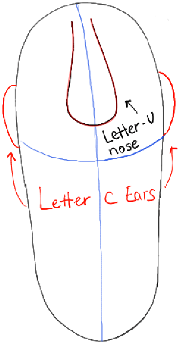 – Draw a letter ‘m’-like shape for the top of the mouth.