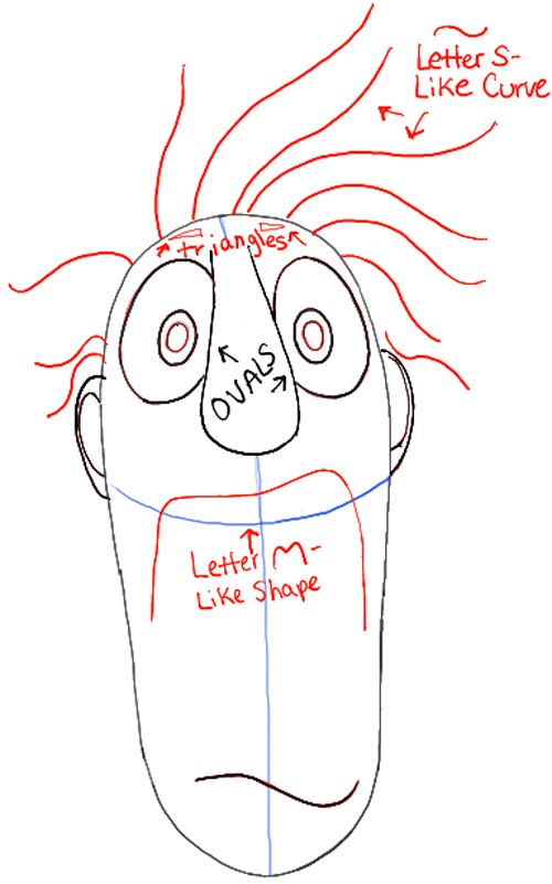 – Draw more letter ‘s’-like curves for the hair shapes.