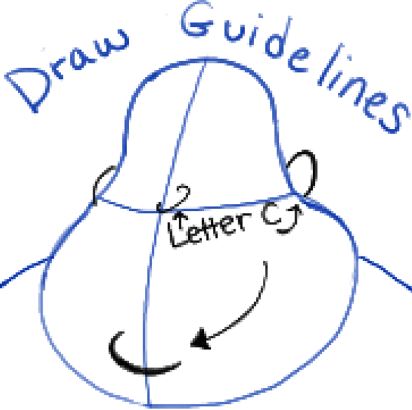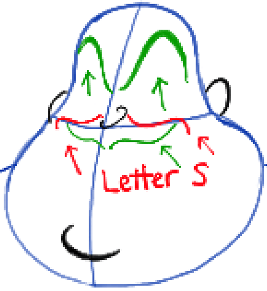 – Draw a bubble letter ‘c’-shaped mouth. Draw a letter ‘c’ shape near this ear.
