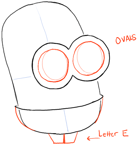 – Draw another oval inside the eyes – this will be the highlight of his eyes.