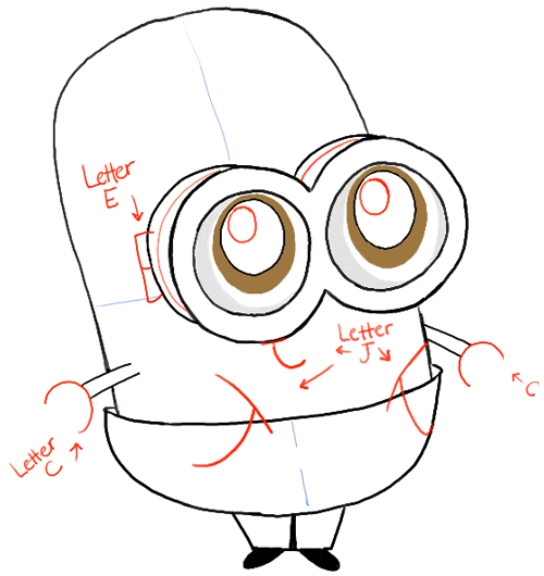 – Now color the little guy in. Be imaginative and color him in however you want. In the movie, minions are yellow with blue overalls.
