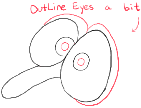 – Outline the eyes a bit and and another oval inside each eye.