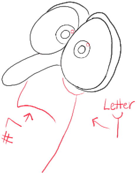 – Draw a #9-like shape on top of the head.