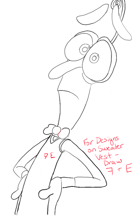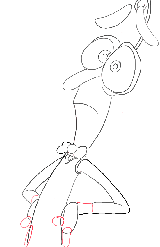 – Draw sideways letter ‘v’ shapes for the arms.