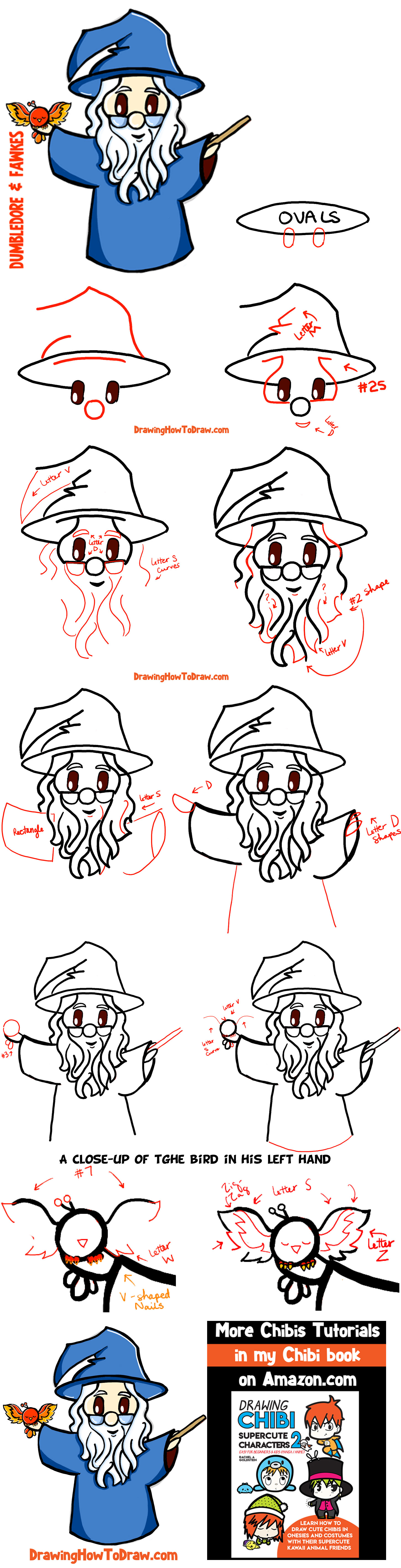 How to Draw Cute Chibi Dumbledore and Fawkes the Phoenix with Step by Step Drawing Tutorial